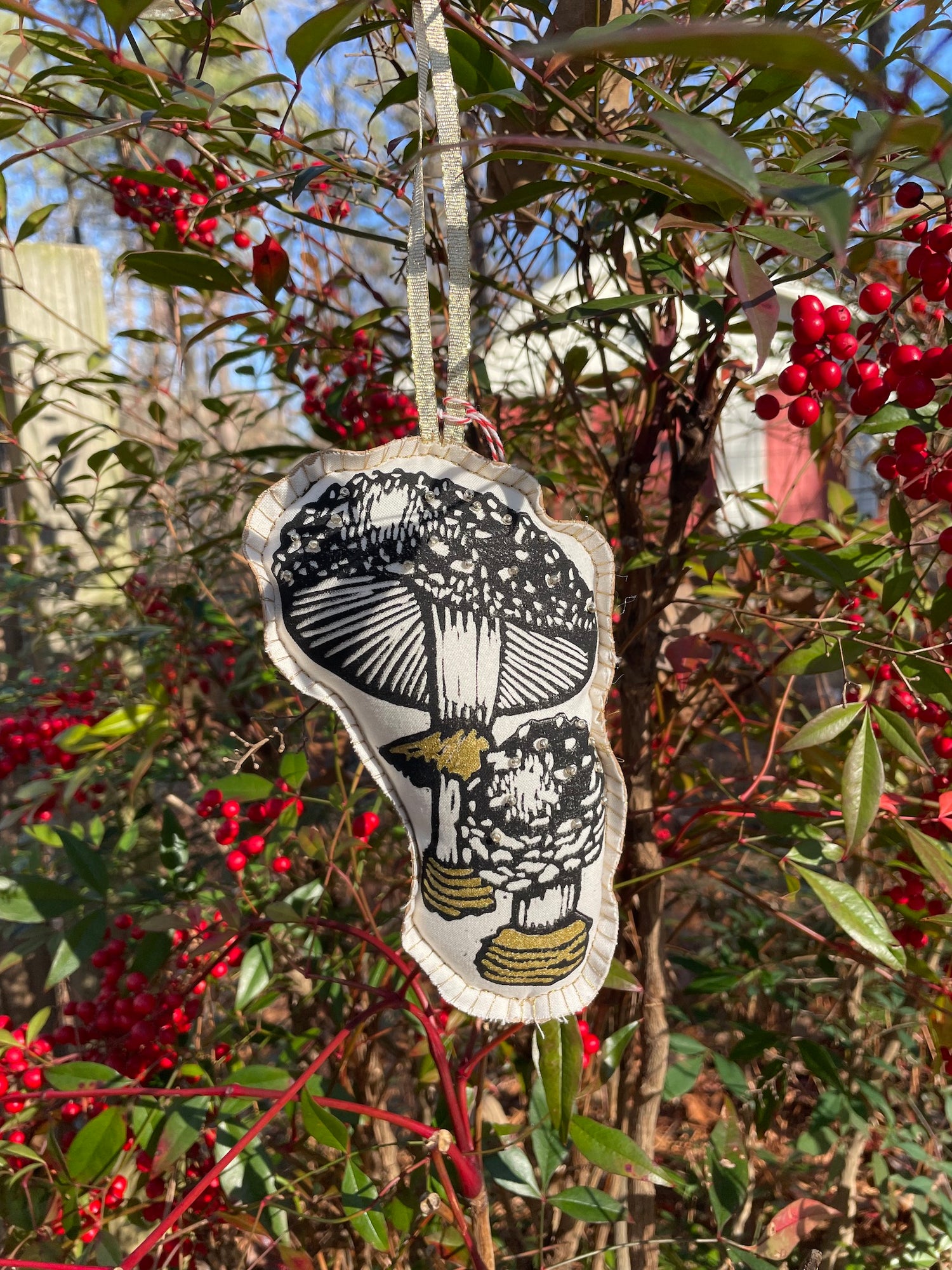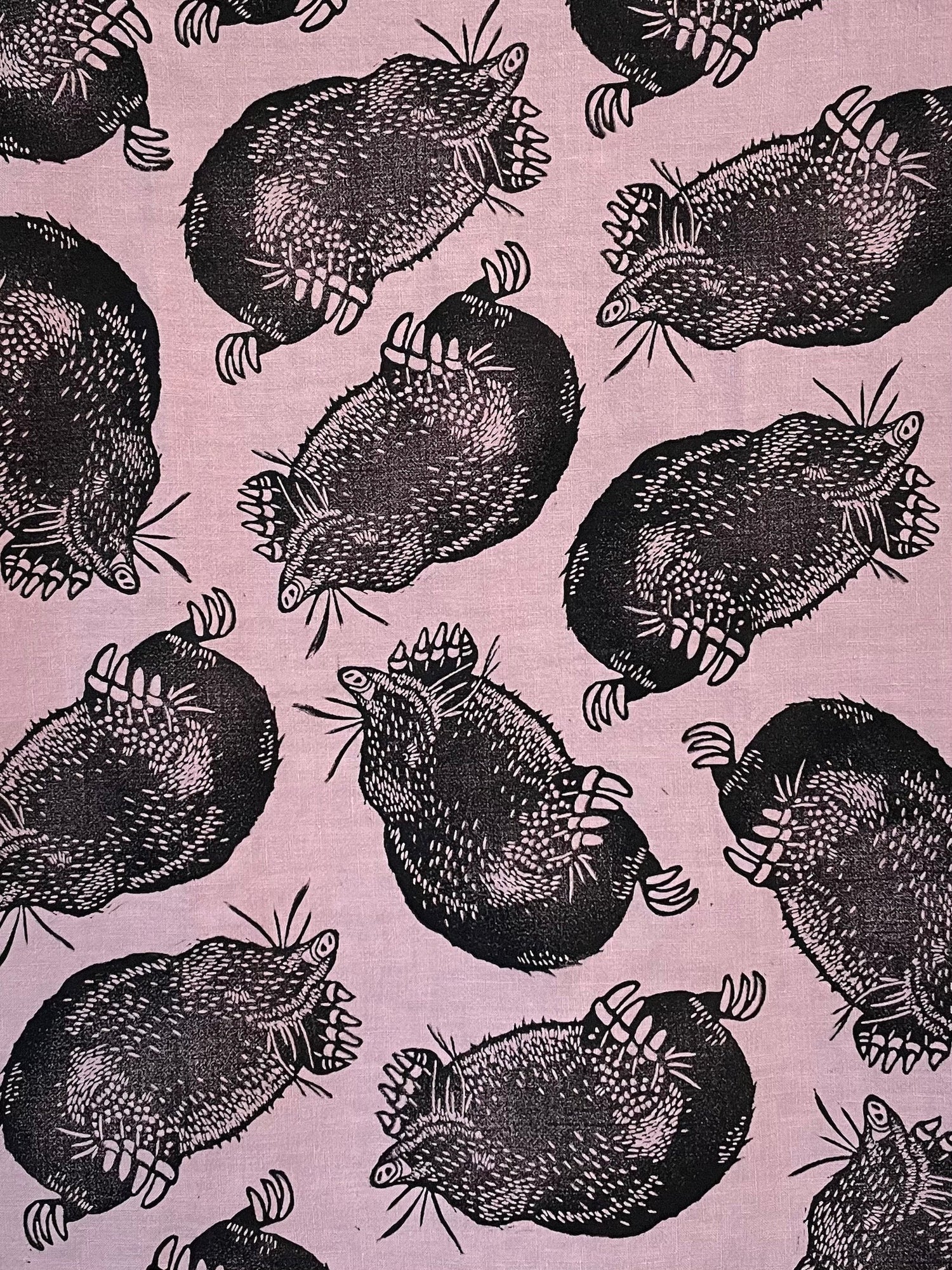 Hand carved, linoleum blocks printed on 100% linen.