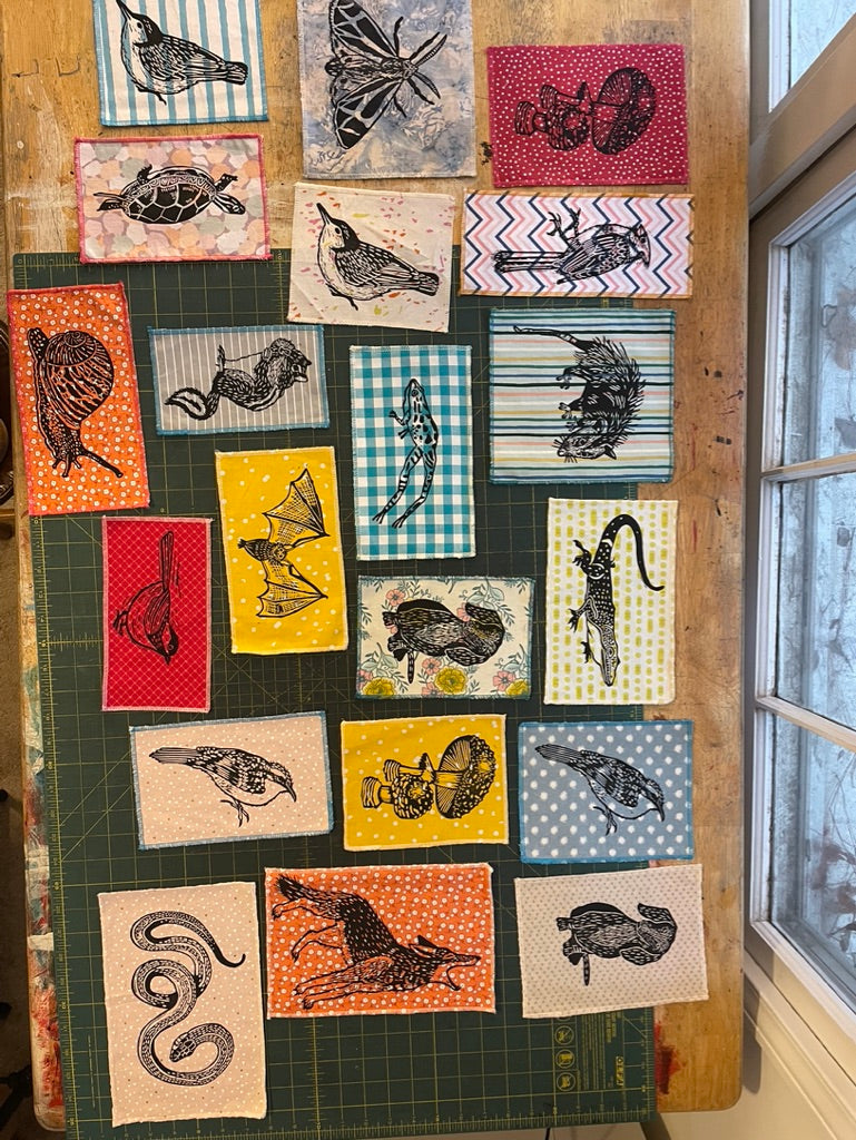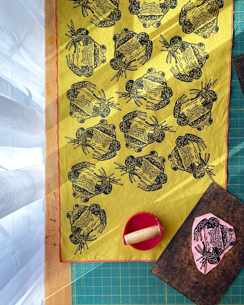 Create your own tea towel with Anna from Little Dog Print Shop. This class is appropriate for beginner printmakers. In this 4 hour class, you will learn to carve your own block from E-Z Carve printmaking material, practice printing on paper and fabric, and print your own tea towel from provided cotton or linen material. I will hem your tea towel after class and you will be able to pick it up in about 1 week. Class takes place at my home studio in Durham, NC. You will go home with your unique block, a set of handprinted cards, a variety of printed fabric scraps, and one tea towel (or two cotton napkins or one bandana). All supplies and light refreshments will be provided. We will be using sharp tools at your own risk. Safety guidelines will be discussed at the beginning of class.
